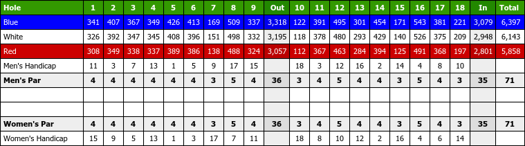 Andover Country Club Scorecard